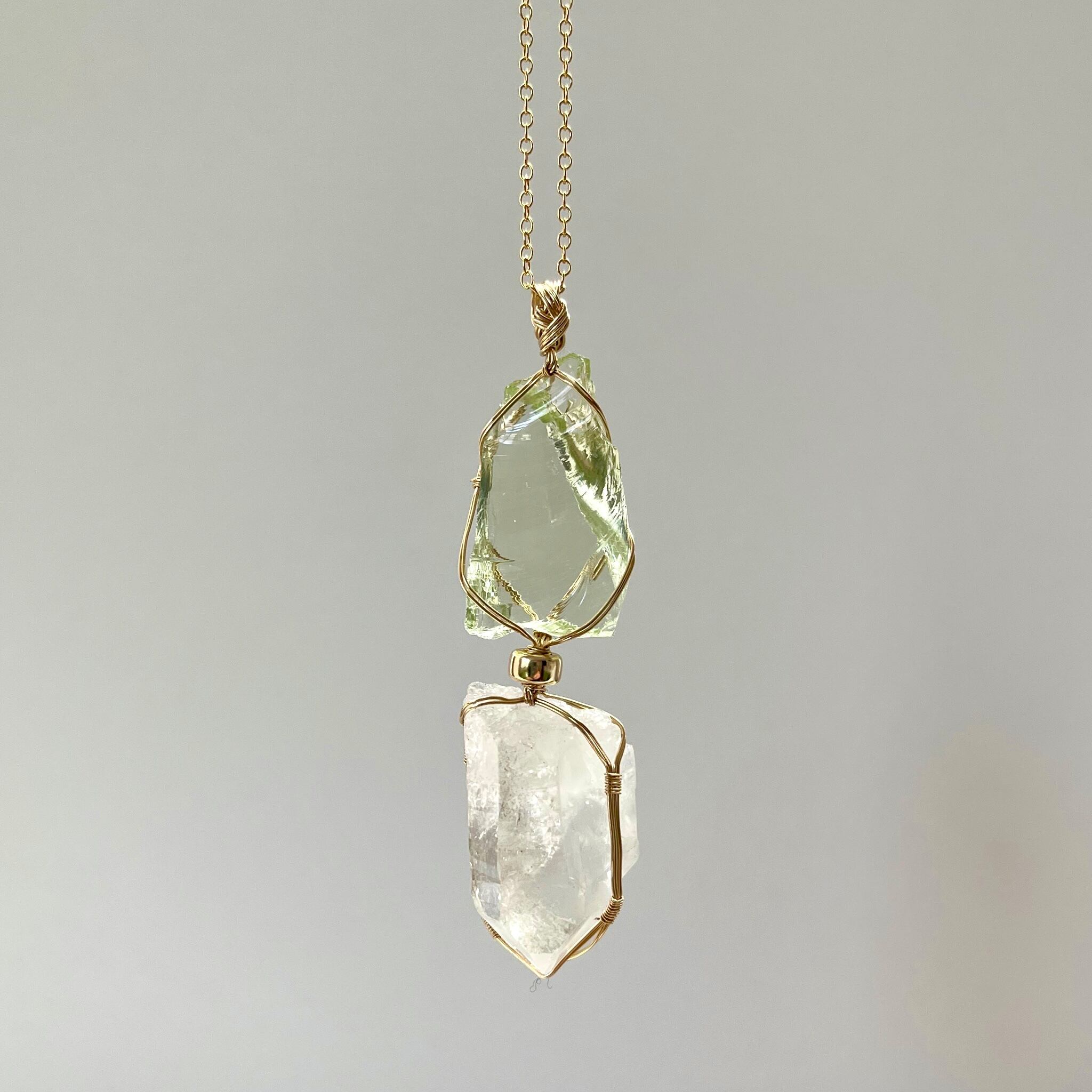 アンダラクリスタル(ライトグリーン)+ クォーツ ツイン女神巻きペンダントトップ Andara crystal pendant